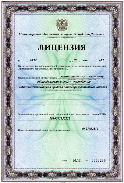| Полное наименование образовательной организации* | Муниципальное казенное образовательное учреждение "Миглакасимахинская средняя общеобразовательная школа" |